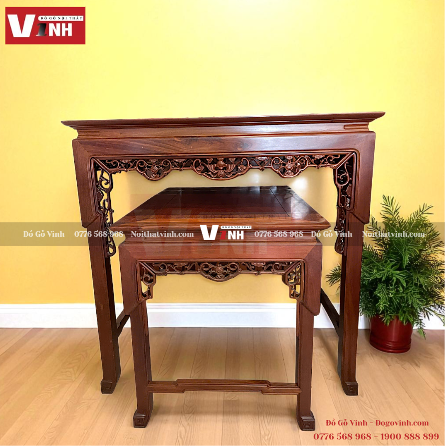 Án Thờ Chạm 2 Món - Gỗ Đỏ Lào