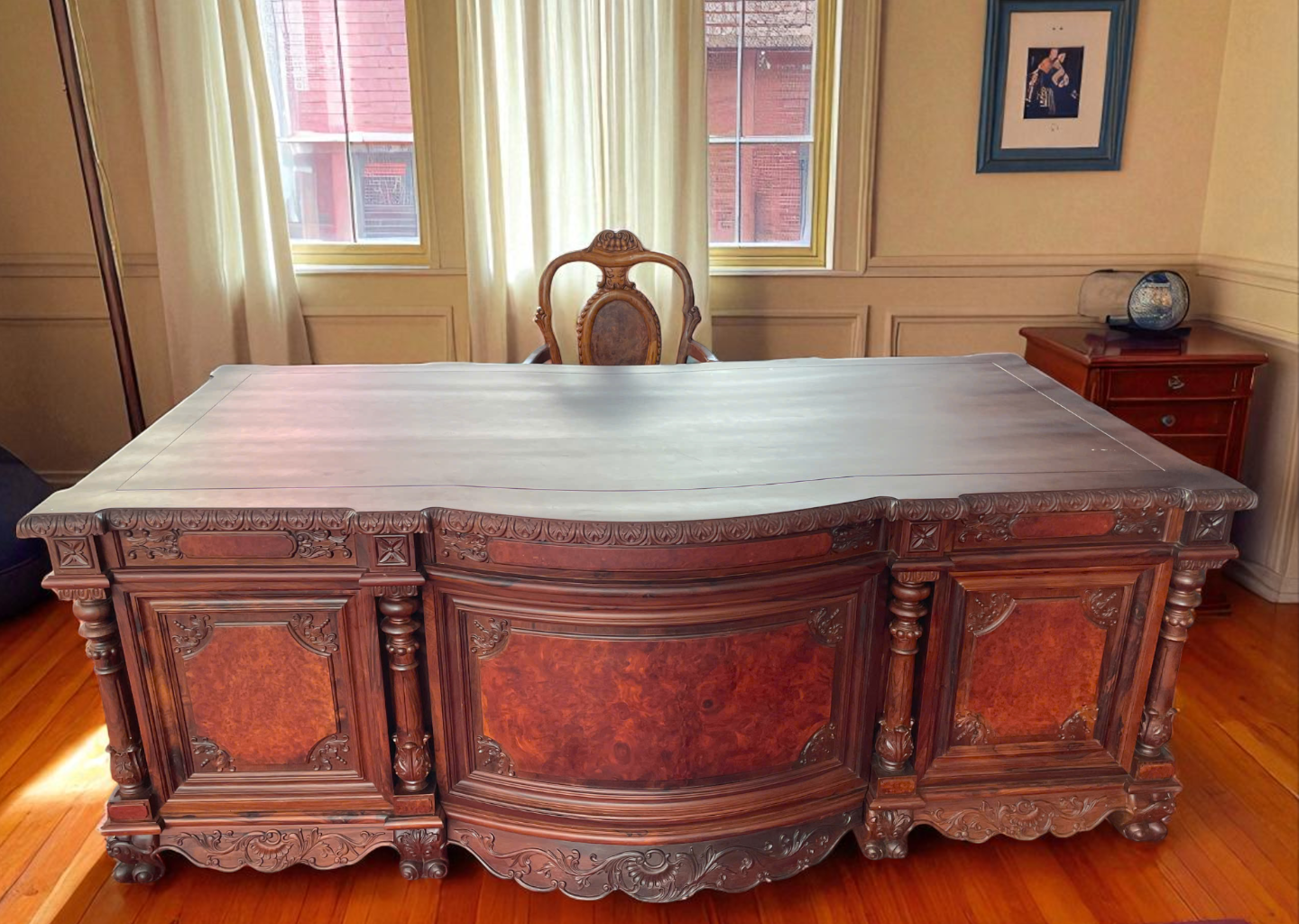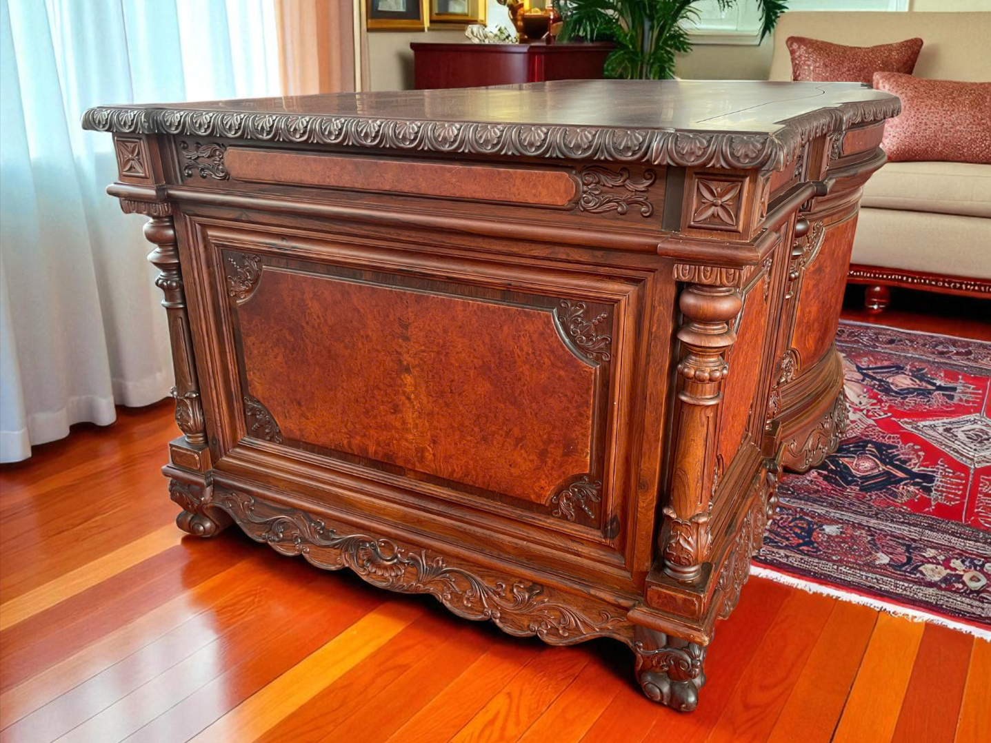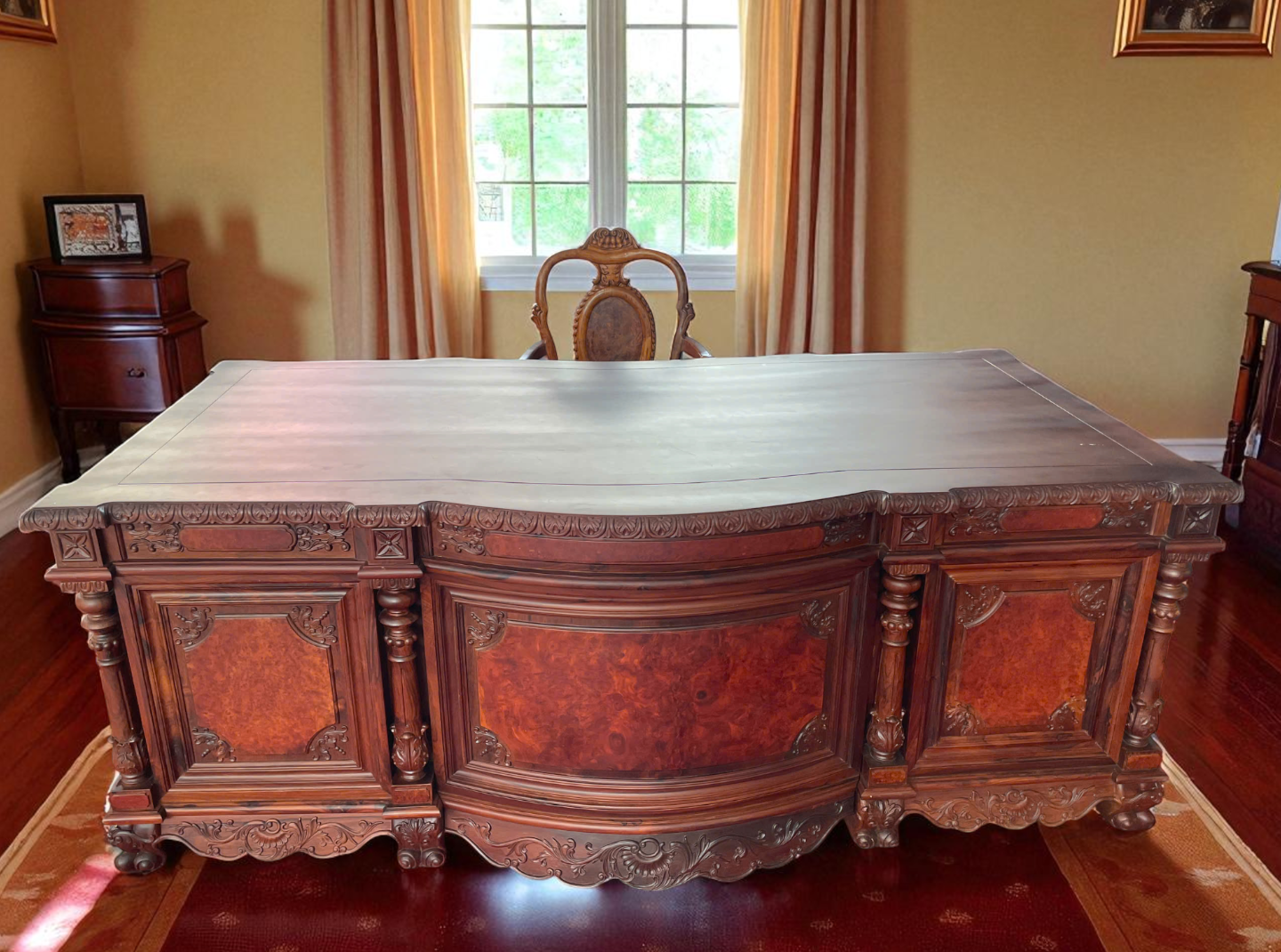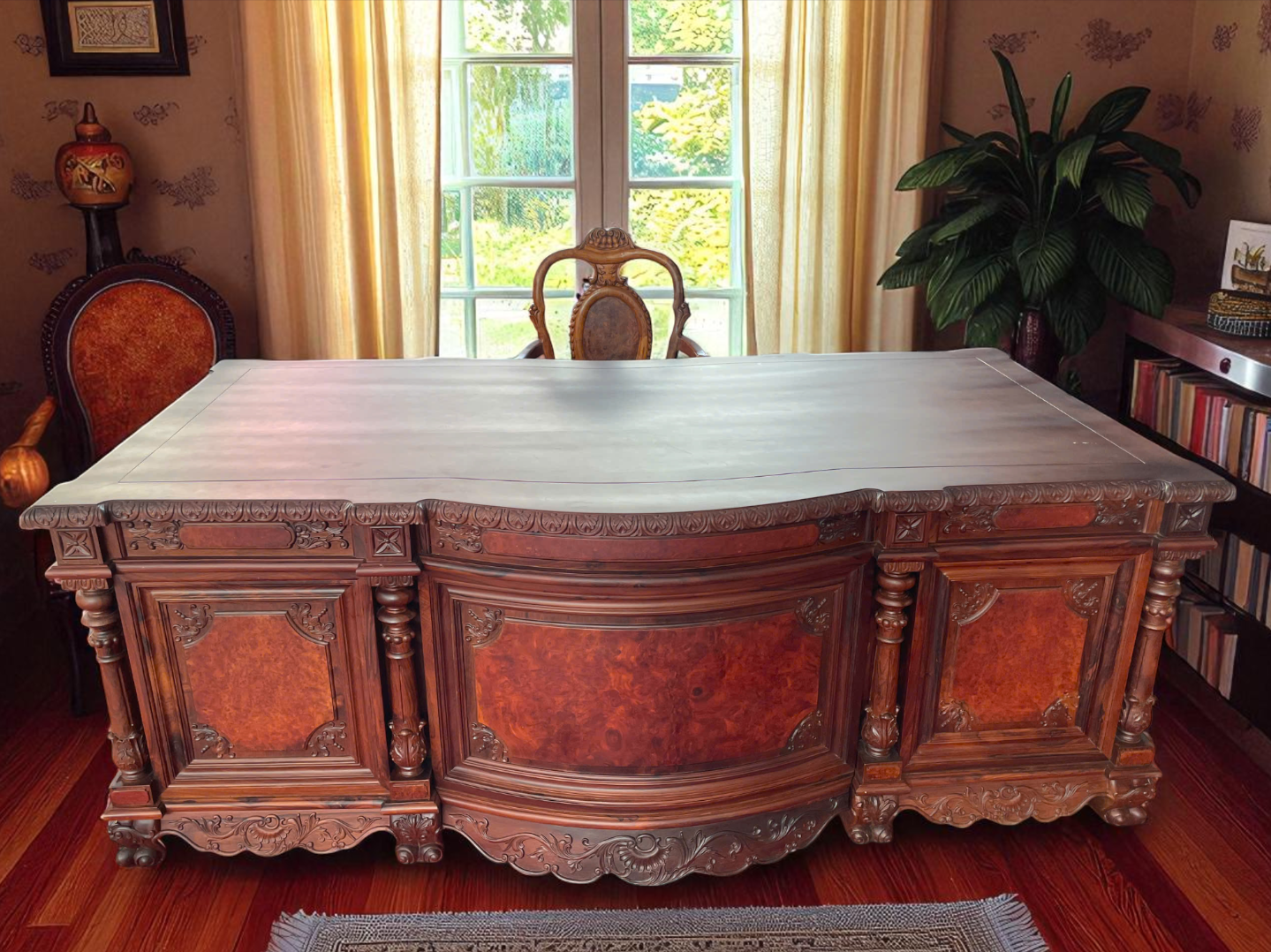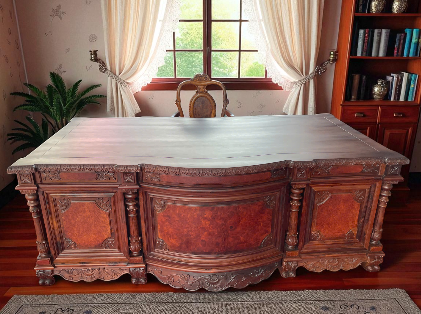 Sản phẩm nội thất Bình Dương cao cấp từ Đồ Gỗ Vinh giới thiệu mẫu bàn giám đốc Bình Dương được chế tác từ gỗ cẩm lai kết hợp với phần nu quý hiếm, mang lại sự sang trọng, đẳng cấp và uy quyền cho không gian làm việc.
