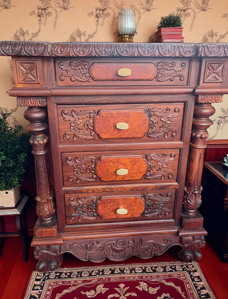 • Chất liệu: Gỗ cẩm lai kết hợp nu quý hiếm