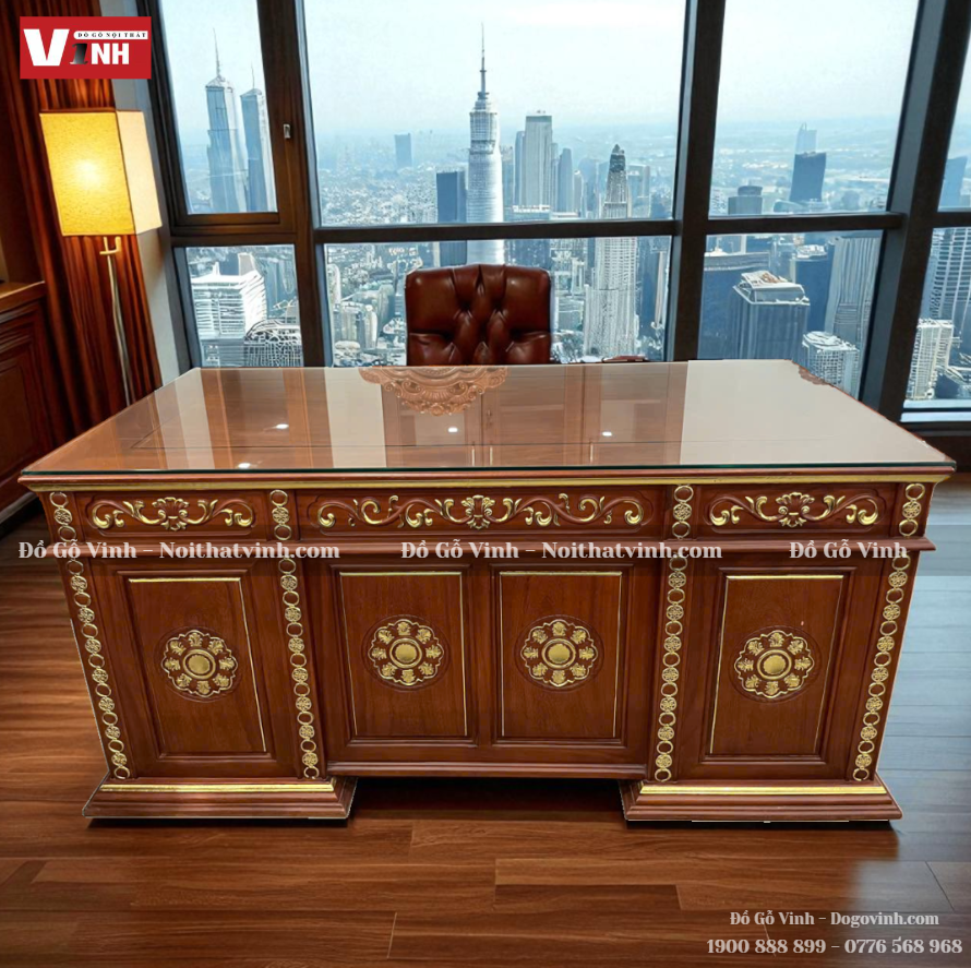 Với tạo hình hoa mai tinh xảo – biểu tượng của may mắn và phú quý – chiếc bàn gỗ mạ vàng trở thành điểm nhấn ấn tượng trong bất kỳ không gian nào. Từ phòng khách biệt thự đến phòng hội họp sang trọng, sản phẩm đều toát lên vẻ uy nghi và quyền quý.