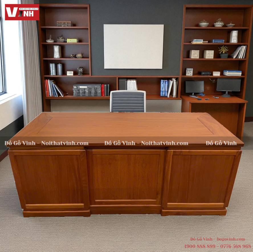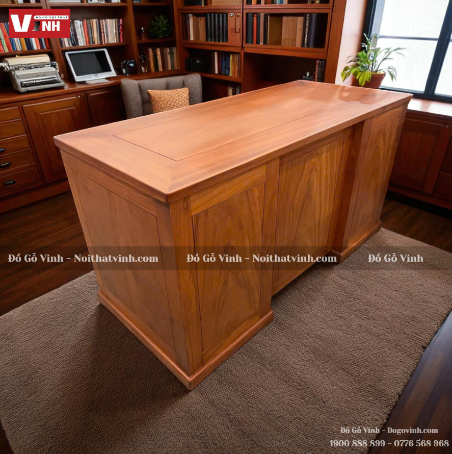 ✨ BÀN LÀM VIỆC V-N01 – GỖ ĐỎ ✨