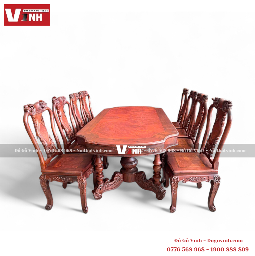 Nội Thất Vinh trân trọng giới thiệu sản phẩm bàn ăn oval 8 ghế đào, chế tác từ 100% gỗ Cẩm Lai quý hiếm – biểu tượng của sự thịnh vượng và bền vững.