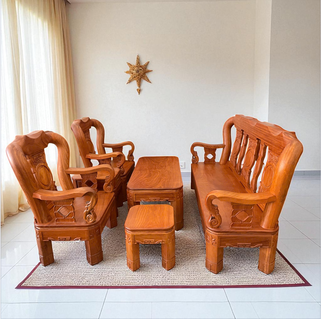 • Gồm 7 món: 1 băng dài, 4 ghế đơn, 1 bàn lớn và 1 đôn trà.