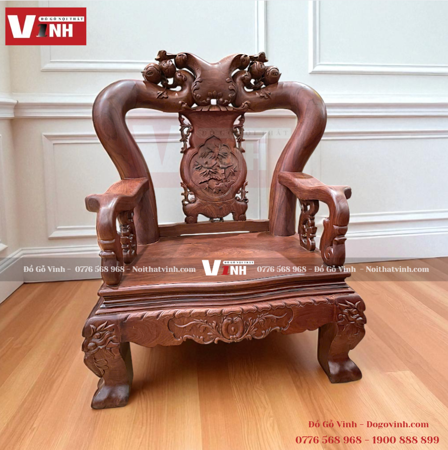 Bộ ghế 14 đào mặt dày 3cm – 10 món được chế tác từ gỗ hương đá cao cấp, mang lại sự sang trọng và giá trị sử dụng lâu dài. Với bề mặt gỗ dày chắc chắn, từng chi tiết được gia công tỉ mỉ, sản phẩm vừa giữ được vẻ đẹp tự nhiên của vân gỗ, vừa đảm bảo độ bền vững qua nhiều năm sử dụng.