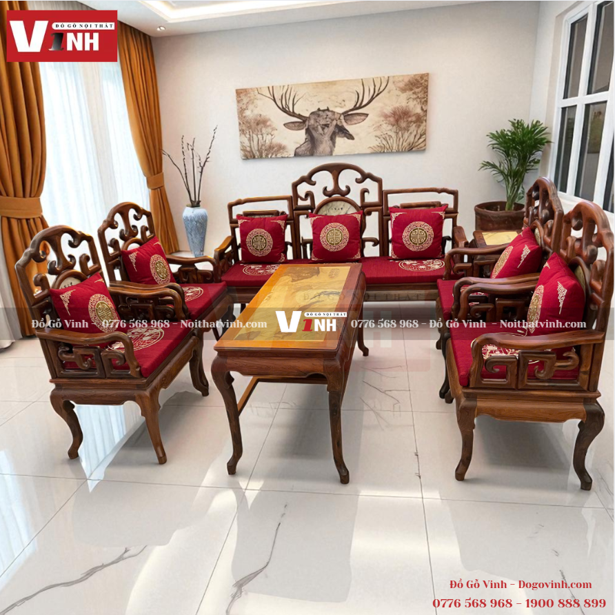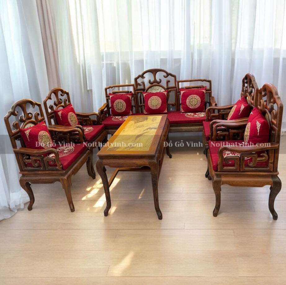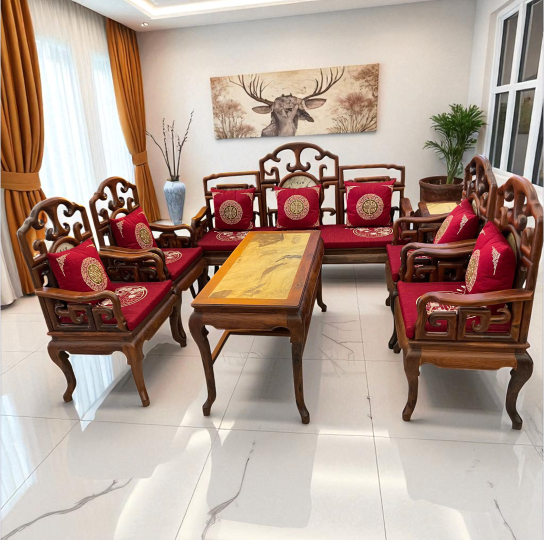 Trong dòng sản phẩm nội thất Bình Dương, Bộ Ghế Cẩn Đá 8 Món tại Đồ Gỗ Vinh luôn nổi bật với sự kết hợp tinh tế giữa chất liệu gỗ quý và nghệ thuật cẩn đá truyền thống. Mỗi chi tiết đều được chạm khắc thủ công tỉ mỉ, đường nét trau chuốt, tạo nên sự sang trọng vượt thời gian.