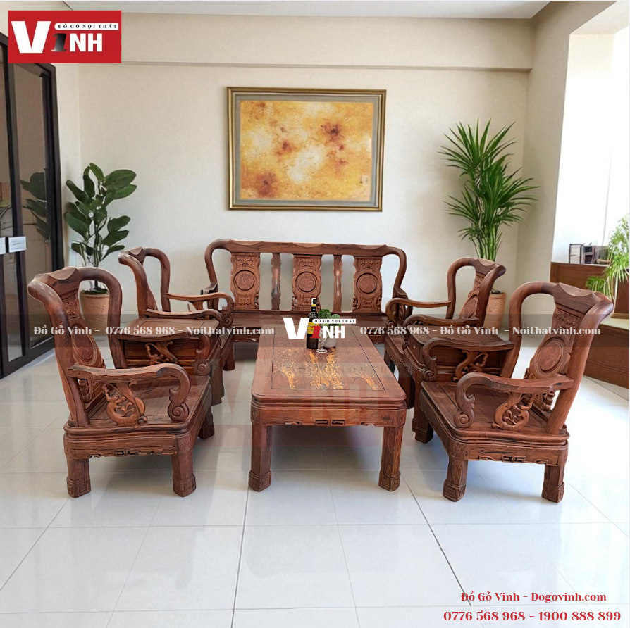 Bộ ghế Chiến Quốc 10 món là dòng sản phẩm nổi bật thuộc phân khúc cao cấp tại Đồ Gỗ Nội Thất Vinh, kết hợp giữa nét oai hùng cổ xưa và kỹ thuật chạm khắc tinh xảo hiện đại.