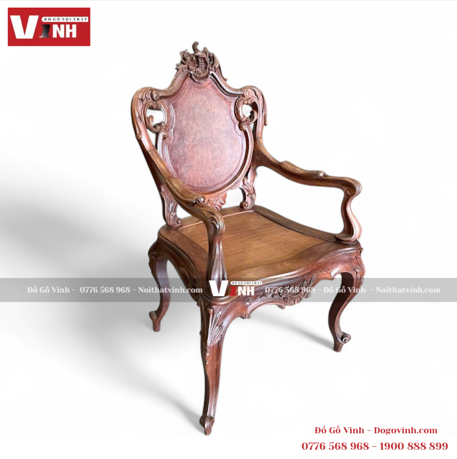 Mỗi chi tiết trên ghế đều được hoàn thiện thủ công tinh xảo, bề mặt đánh bóng kỹ lưỡng, tôn lên vẻ đẳng cấp cho không gian phòng khách, biệt thự, nhà cổ hay showroom trưng bày.