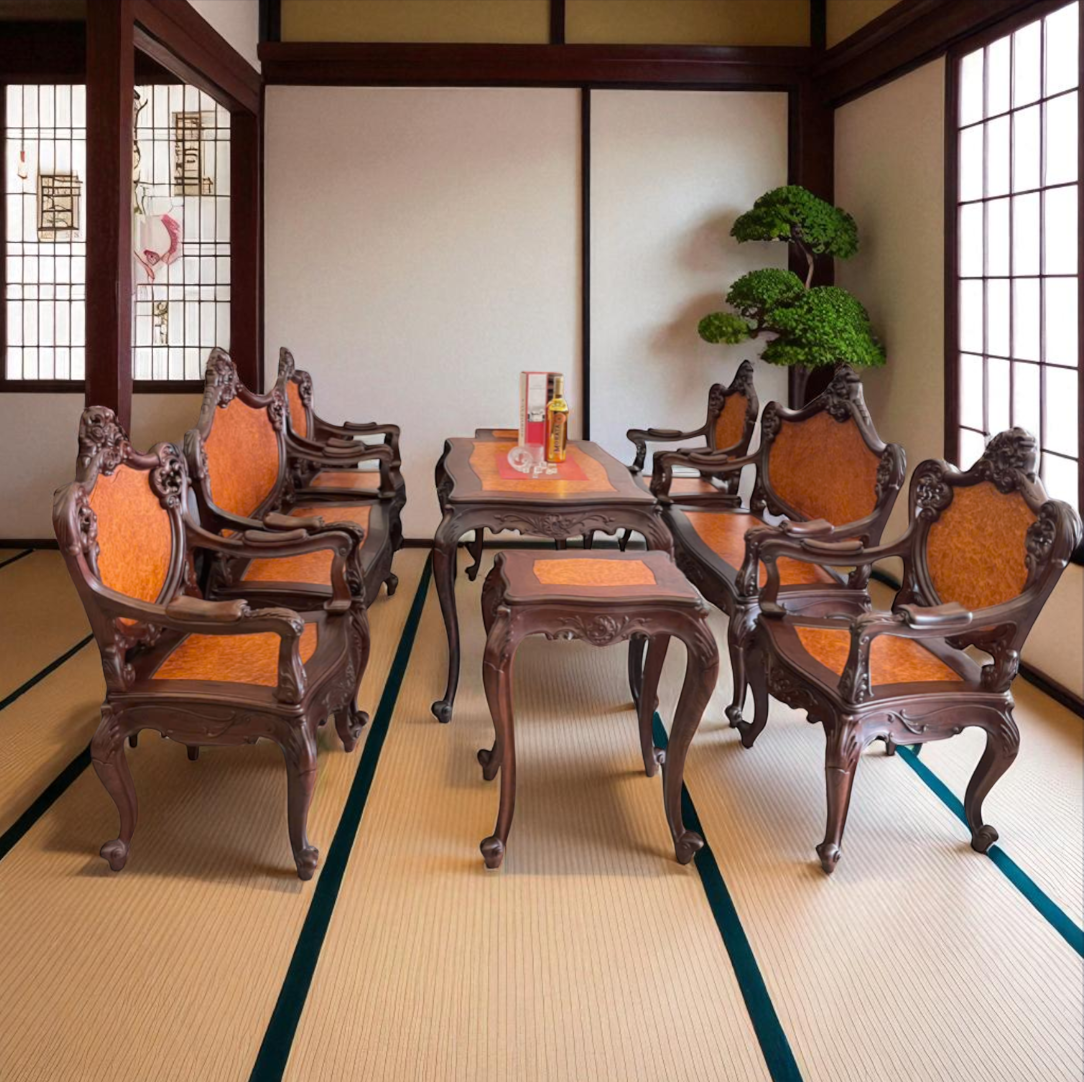 Bộ Louis 9 món VIP là sự kết tinh giữa gỗ quý thiên nhiên và bàn tay điêu luyện của nghệ nhân.