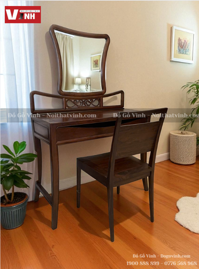 Đặc biệt, nhờ vào chất liệu gỗ Chiu Liu bền đẹp và đường nét thủ công tỉ mỉ, bộ bàn phấn mang đến cảm giác sang trọng, tinh tế và đậm chất Á Đông, rất được ưa chuộng trong xu hướng nội thất Bình Dương hiện đại.