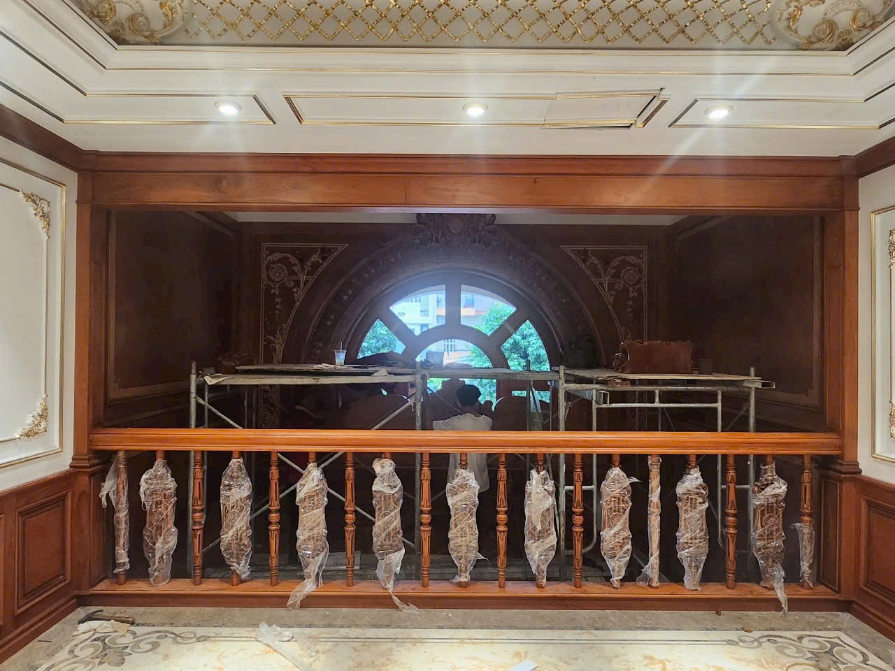 • Lan can gỗ: chạm khắc tinh xảo, đảm bảo an toàn và thẩm mỹ.