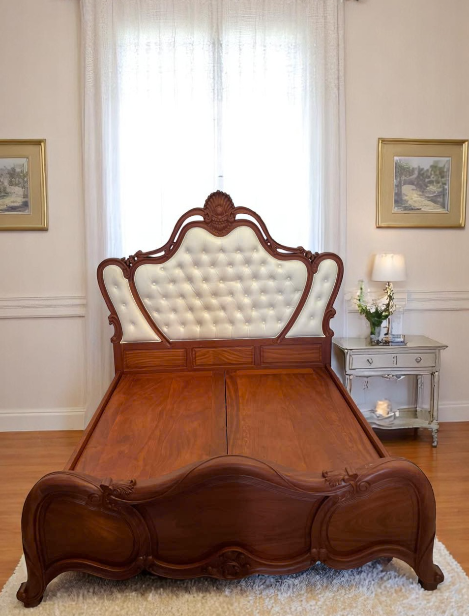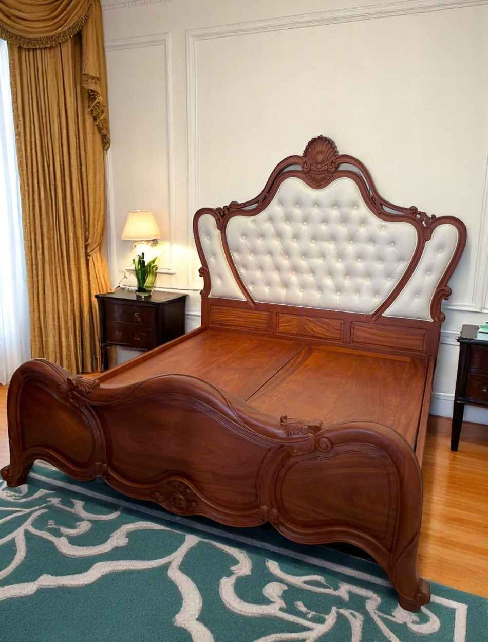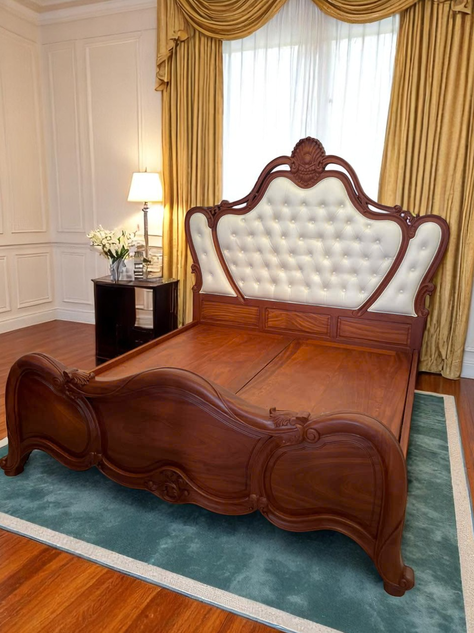 • Mẫu giường Louis đầu nệm Vip 1m8 là sự kết hợp hài hòa giữa phong cách cổ điển Pháp và đường nét thủ công tinh xảo. Phần đầu giường bọc nệm cao cấp, được chạm trổ sắc nét theo phong cách Louis, tạo cảm giác sang trọng cho không gian nghỉ ngơi.