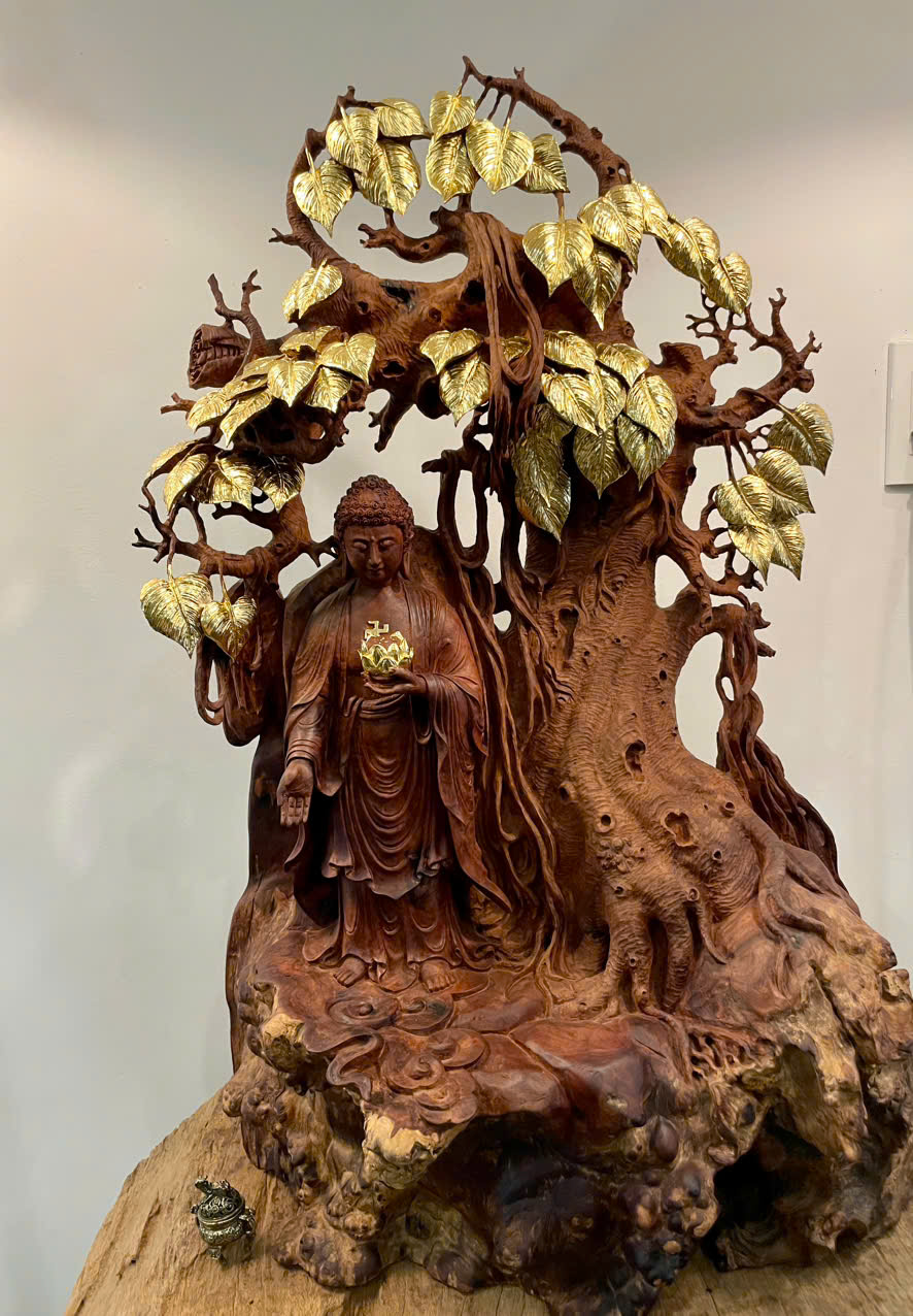 Được chế tác từ nu hương quý hiếm Việt Nam, kết hợp kỹ thuật mạ vàng rồng 9999 tinh xảo, tượng Phật A Di Đà tại Đồ Gỗ Vinh là tác phẩm nghệ thuật độc bản – kết tinh giữa tâm linh và giá trị phong thủy sâu sắc.