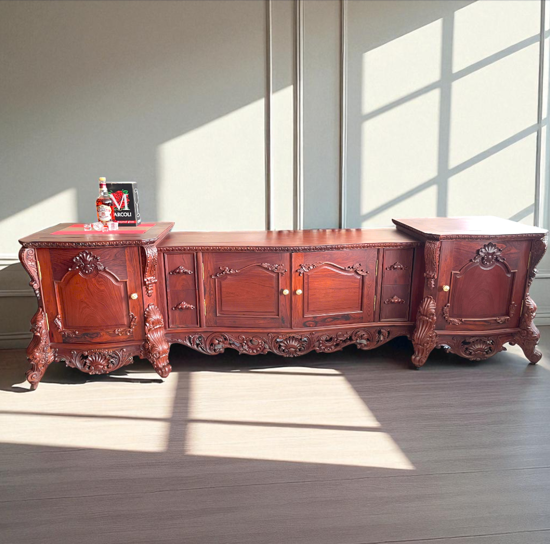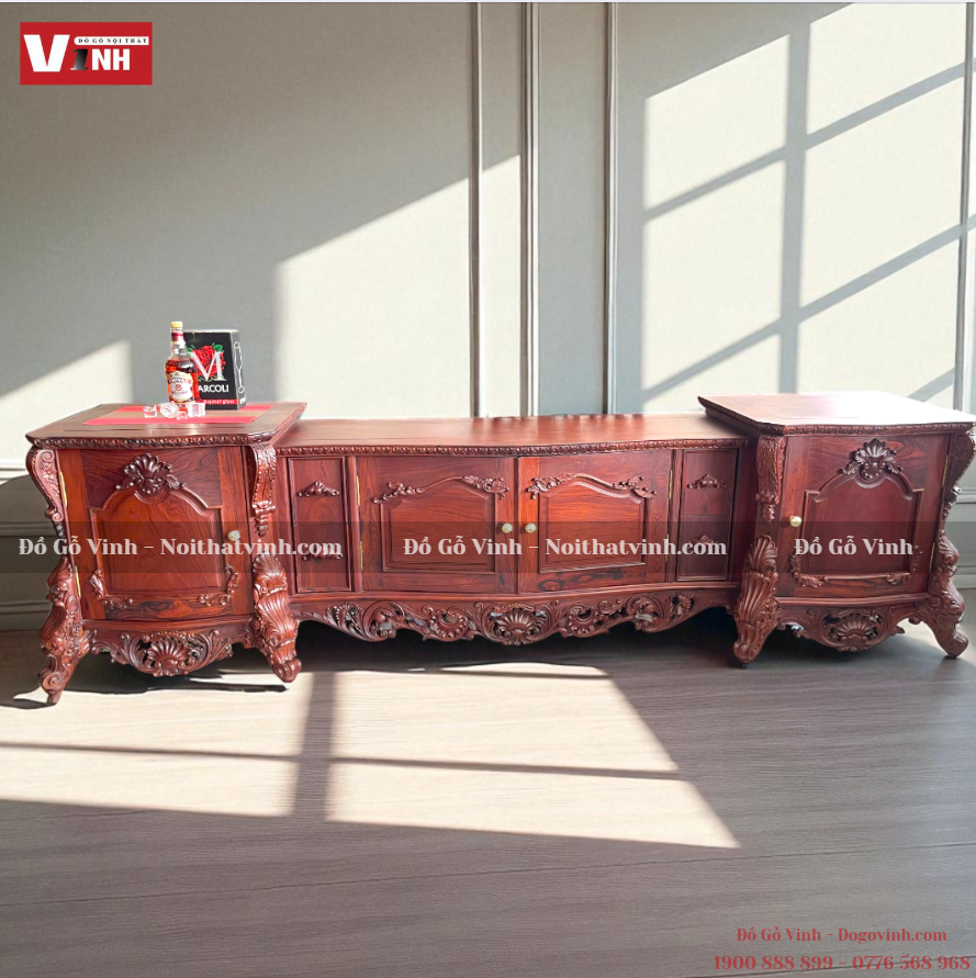 Mẫu Táp Tivi Hoàng Gia gỗ cẩm lai quý hiếm là sản phẩm cao cấp được chế tác thủ công tinh xảo, phù hợp với những không gian phòng khách sang trọng. Đường vân gỗ tự nhiên, màu sắc trầm ấm, tạo điểm nhấn đầy quyền quý cho ngôi nhà.