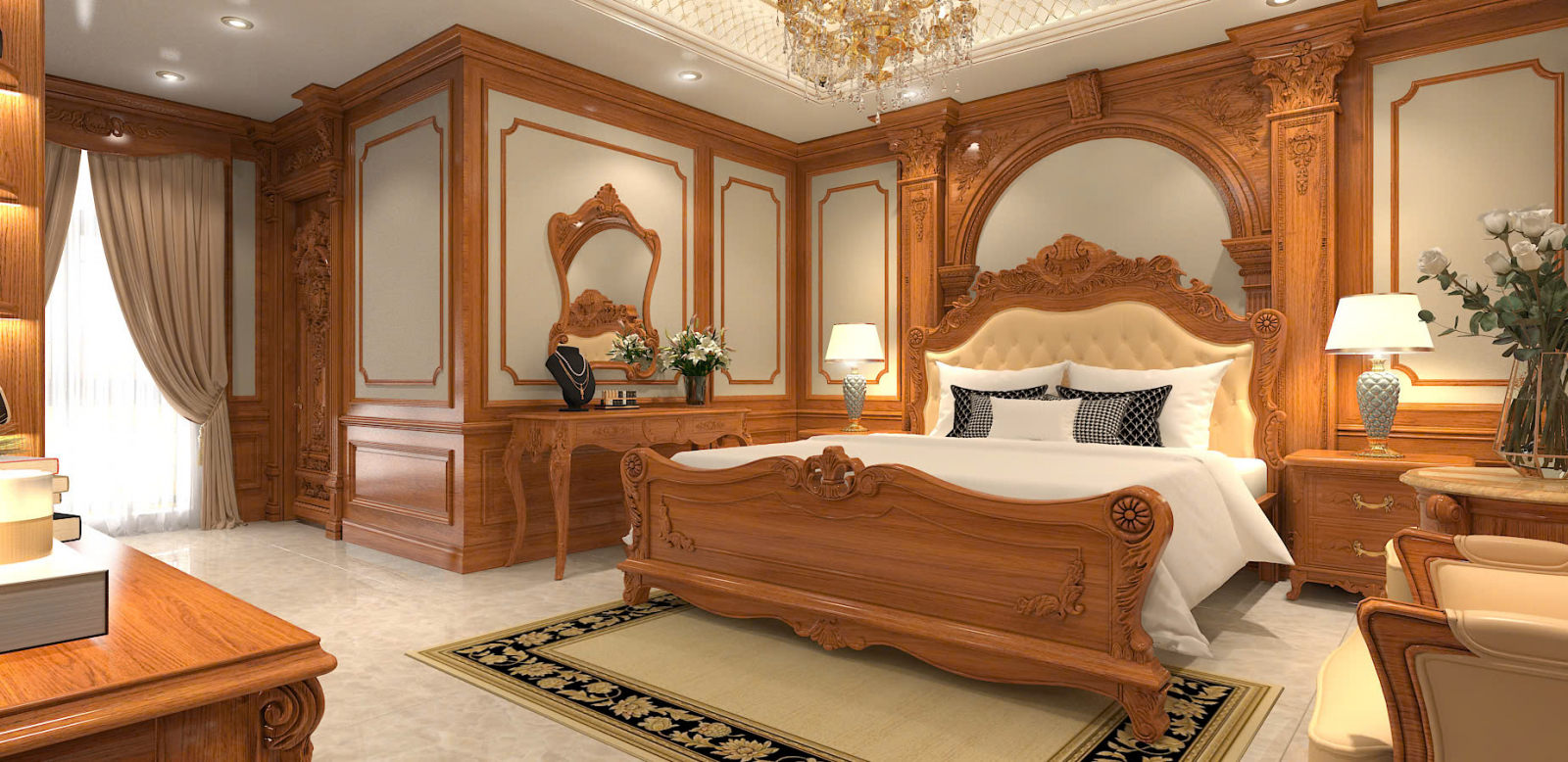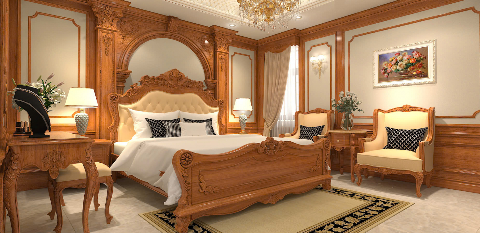 • Bộ phòng ngủ Nữ Hoàng là điểm nhấn hoàn hảo cho ngôi nhà mang phong cách sang trọng, hoàng gia. • Thiết kế độc quyền bởi Đồ Gỗ Vinh, kết hợp hài hòa giữa họa tiết cổ điển và kiểu dáng hiện đại. • Các chi tiết được chạm khắc thủ công tinh xảo, tạo nên vẻ đẹp kiêu sa và quyền quý cho không gian nghỉ ngơi. • Toàn bộ sản phẩm sử dụng gỗ tự nhiên cao cấp, xử lý kỹ chống cong vênh, mối mọt – bảo đảm độ bền vượt trội theo năm tháng.