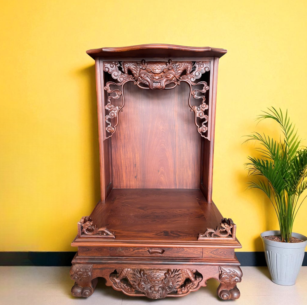 Mẫu Trang thờ chạm Rồng VIP được chế tác hoàn toàn từ gỗ Cẩm Lai quý hiếm, nổi bật với: